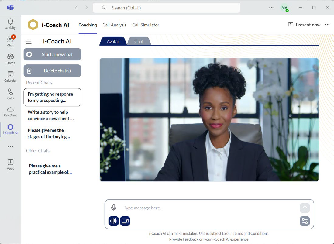 i-COACH® AI SUPPORTS TEXT-BASED INTERACTIONS AS WELL AS VOICE MODE, AND ADVANCED AI AVATARS
