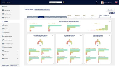 The use of i-Coach AI is incorporated into our dashboards, providing insight into what people are working on, their skill levels, and the impact that your enablement work is having.
